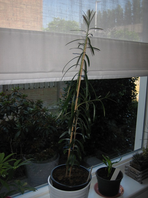 Ik heb vorig jaar een stekje gekregen van een callistemon. Nu is hij een 50 tal centimeters gegroeid, en heeft halverwege een enkele aftakking.