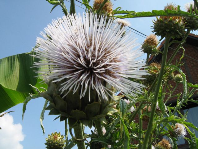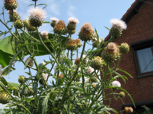 Op vraag van enkele forumleden hier foto's van witte artisjok,of is er een andere naam voor ????? hoe ik eraan ben gekomen weet ik niet,normaal is artisjok lila van kleur ,deze is witte, en is nu -+ 260 cm hoog.Als er leden zijn die een andere naam hebben voor deze plant hebben ,mogen dat altijd zeggen,want ik zeg witte artisjok omdat ik ze ook niet anders ken.
