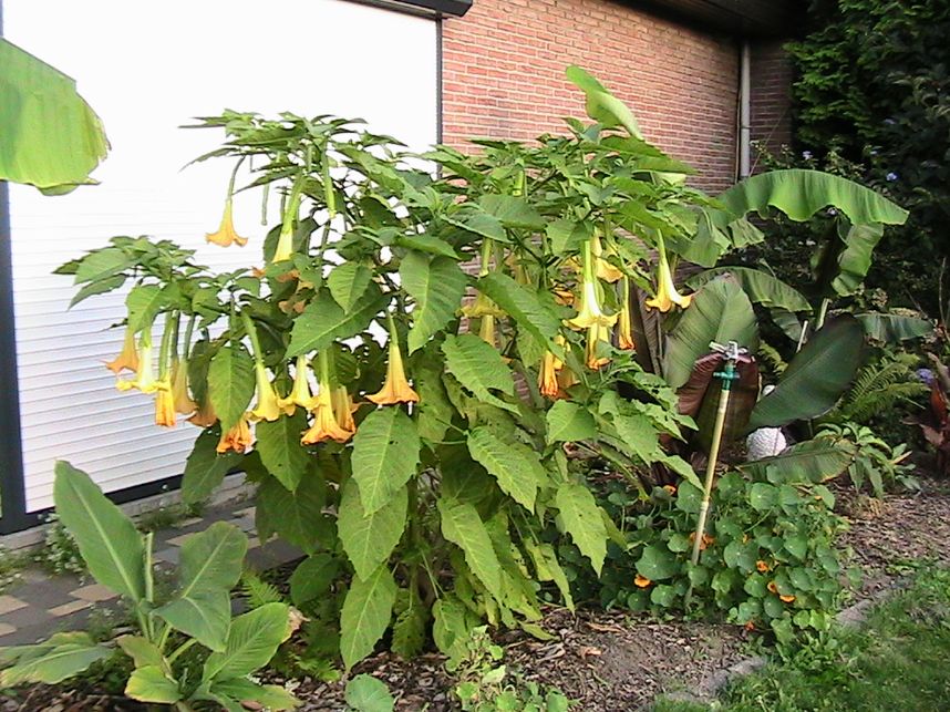 Inderdaad, ik ga nog maar eens een stuk gazon omspitten tegen het terras om daar een hele verzameling brugmansia''s te zetten.