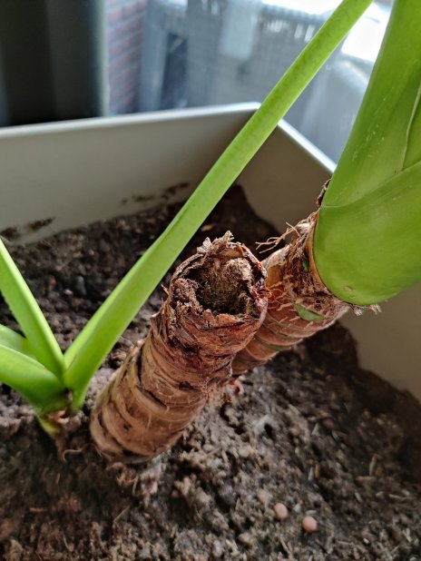 Ik heb sinds kort een alocasia macrorrhiza met 3 stammen, was een stam waar geen bladeren of stengels aan zaten (zie foto) .