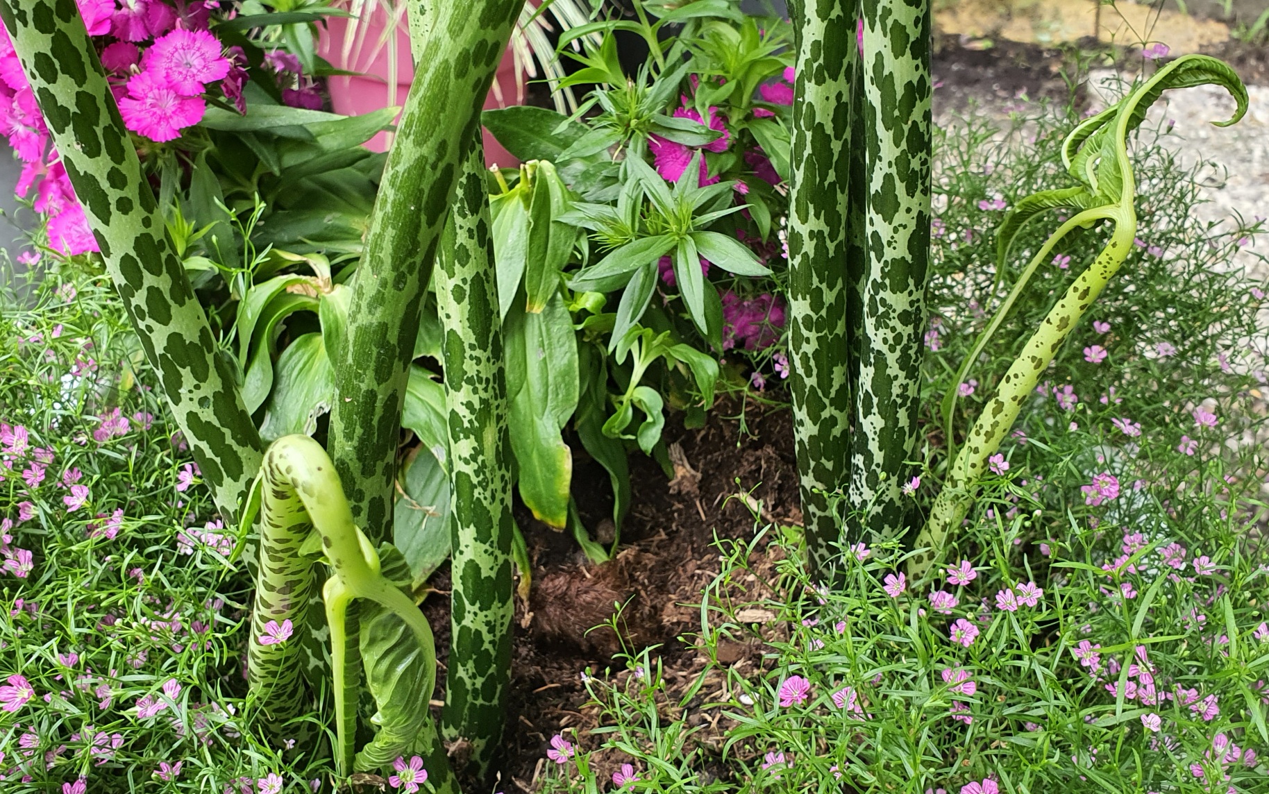 Kan iemand mij vertellen hoeveel bladstengels ik aan een knol Sauromatum venosum kan verwachten? 2 van de knollen geven nu al een 4e bladstengel en ik ben nieuwsgierig hoeveel ik er meer kan verwachten. Ik heb ze zowel in pot in mijn achtertuin als op mijn moestuin staan. Die op de moestuin (3e bladstengel komt boven) doen het niet zo goed als de pot in de achtertuin. Ik heb ze vorig jaar gekocht, kleine knolletjes. Zelf een paar gehouden en een paar aan mijn vader gegeven. Bij hem zijn ze aan hun 2e blad toe. Ook zou ik willen weten of ik de oudste bladeren af kan knippen omdat ze gewoon niet heel mooi meer zijn. De oudste bladeren zijn 1 juni boven de grond gekomen dus nu 2 maanden oud.