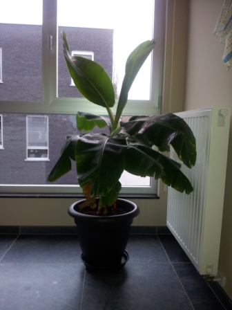 Hij staat momenteel aan een zeer grote raam waar enkel 's morgens zon is maar ook wel vlak naar een verwarming (er is momenteel geen ander plaatsje).