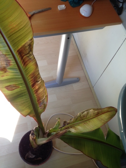 Aangezien ik bij het form "plantendokter" al dagen geen antwoord krijg en de ensete's er niet al te best uit zien, probeer ik het hier. Ik heb 2 ensete's die één seizoen in de volle grond hebben gestaan. Ze zijn weer uit gaan lopen, maar de blader zien er erg slecht uit. Op de eerste foto zie je eentje met heel rare vlekken op zijn blad. Het 3e blad wat hij nu krijgt is erg klein en helemaal misvormd(het eerste blad zag er echter prima uit). Op de tweede foto zien jullie eentje die nu twee bladeren heeft. Het tweede blad was echter zo slap dat het direct omknakte. Weet iemand wat er aan de hand is?