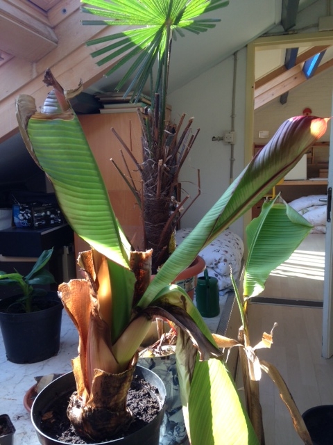 Ik heb de ensete op de eerst foto uit de pot gehaald. De wortels zagen er nog prima uit. Ik heb deze ensete's in de winter geen drup gegeven. Ze staan nu op een zolder waar het 21 graden is. Het lijkt me sterk dat ze teveel water hebben.