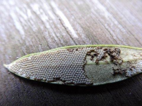 wie weet raad? Mijn olijfboom staat er nogal zielig bij; alle bladeren zijn als foto 2 en 3. Foto 1 is een blad van dezelfde boom met eitjes van....? Zou dit beest ook zorgen dat de bladeren zoals foto 2 en 3 aangetast worden aan de onderkant, aan de bovenkant geel worden en dan afvallen. Heb een tijdje geleden al eens gespoten met anti-insecten spul dus met geen resultaat.