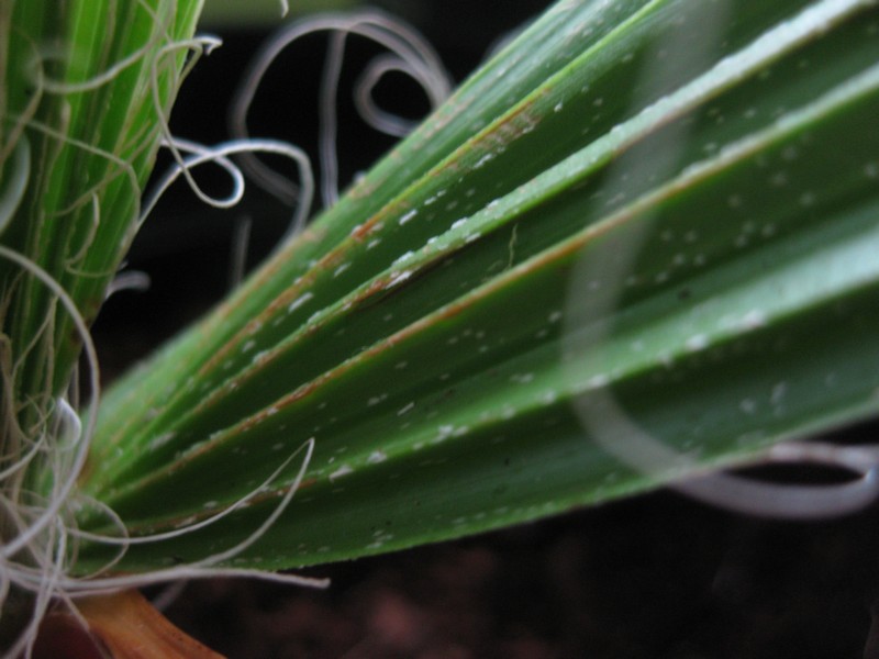 Al sinds een jaar volg ik dit forum en het is altijd leuk om de topics hier te lezen. Rond die tijd ben ik ook begonnen met wat zaailingen. En je weet hoe het gaat dan :D. Tot aan de zomer ging alles goed, maar toen ik terugkwam van vakantie merkte ik dat mijn washy (F.) flink was gegroeid :) , maar ook dat er allemaal kleine witte schubben op de nieuwe bladeren zaten. Daarna begonnen de oude bladeren ook te verdrogen, in een sneller tempo dan er nieuwe bij komen...