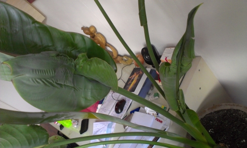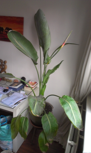 IK heb al zo'n 10 jaar volgens mij een Strelizia. Hij deed het enige tijd wel goed, totdat ie ineens vervormde en verkreukelde bladeren ging produceren. Één blad is zelfs nooit uitgekomen. Daarnaast hebben een aantal bladeren ook bruine vlekken (zie foto's).