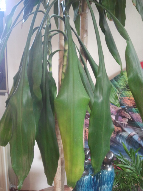 De plant is 1,90 hoog en heeft 4 stammen (van lang naar kort). De korte stam heeft het helaas niet meer gehaald en is helemaal kaal. Ik heb deze plant nu iets meer dan ander half jaar. Zo nu en dan krijgt de plant aan de onderkant gele bladeren die daarna bruin worden en eraf vallen. Op zich geen probleem alleen moet het natuurlijk niet te lang doorgaan :? De laatste paar weken heeft de plant veel bladeren uiteindelijk bruin laten worden. Doe ik toch iets verkeerd? Ik probeer de aarde tamelijk droog te houden. Iemand tips?