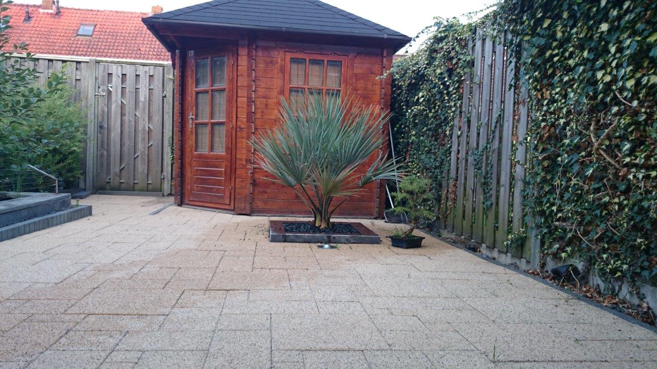 Ik weet niet welke grond jij hebt, maar de verharding rondom rond je palm laat zeker al geen water door.