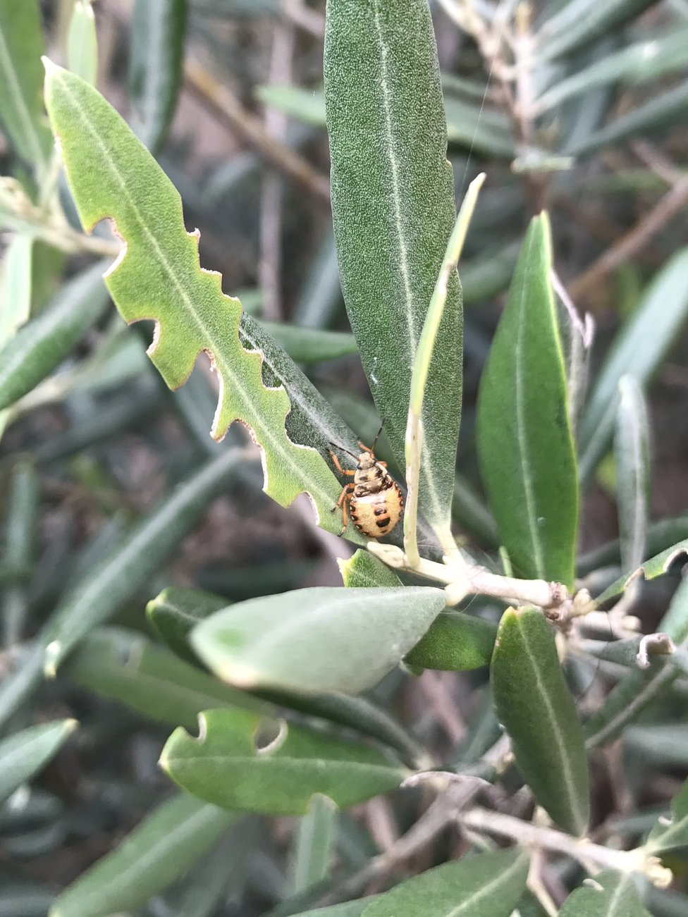 Wij hebben een paar weken terug een olijfboom gekocht. Helaas worden de blaadjes nu opgegeten. Ik heb gezocht naar beestjes of iets dergelijks, maar die kon ik niet vinden. Vandaag vond ik toch een beestje, maar geen idee wat voor beestje dit is én of dit de boosdoender is. Wie kan ons hiermee helpen? En als dit de boosdoender is, hoe kan ik het dat bestrijden?