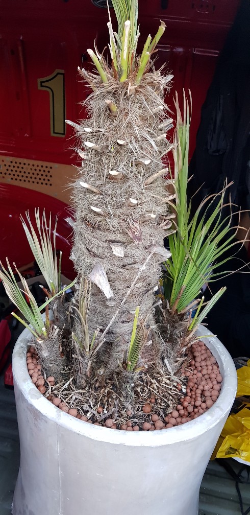 Aangezien bovenstaand exemplaar misschien wat opstartproblemen zal hebben zou ik ff de wortels/kluit checken maar verder is Chamaerops een palm om te negeren en verwaarlozen. :mrgreen: