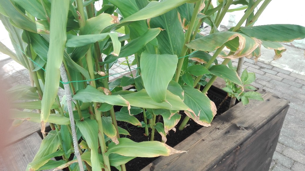 Ik heb weer eens wit-oranje randen aan mijn hedychiums.