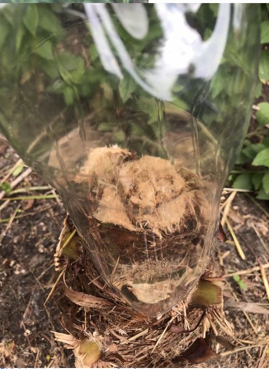vorige week donderdag, hadden we de P. Canariensis terug gezaagd. Volgens “experts” van een straat verder die een grote P. Canariensis hebben staan zou dit een goede oplossing zijn.