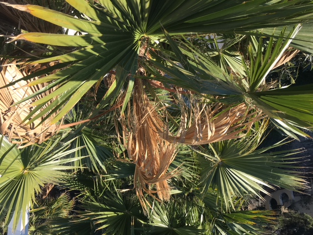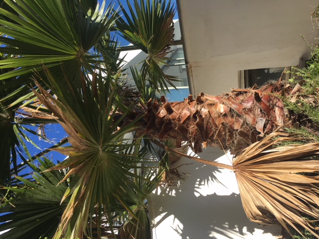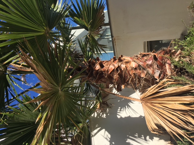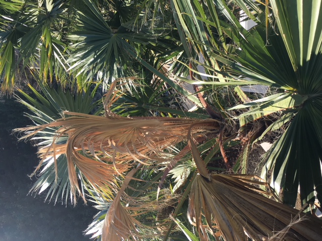 Eén van de washingtonia's robusta die hier bij mijn ouders in Spanje staat is volgens mij het loodje aan het leggen.