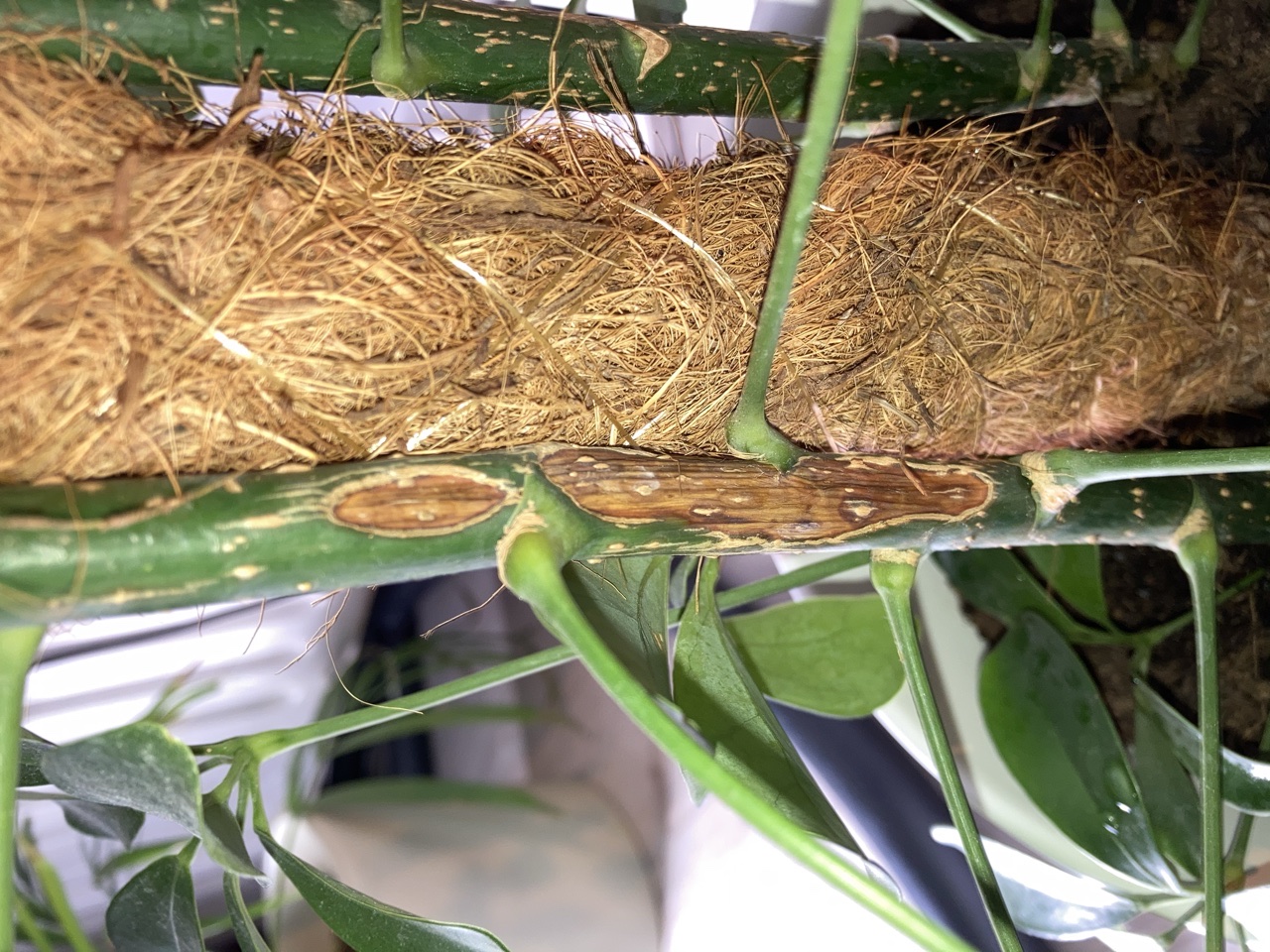 Ik heb onlangs opgemerkt dat de plant veel bladeren verliest en ook wat lijkt te ‘rotten’ op sommige plaatsten aan de stam.