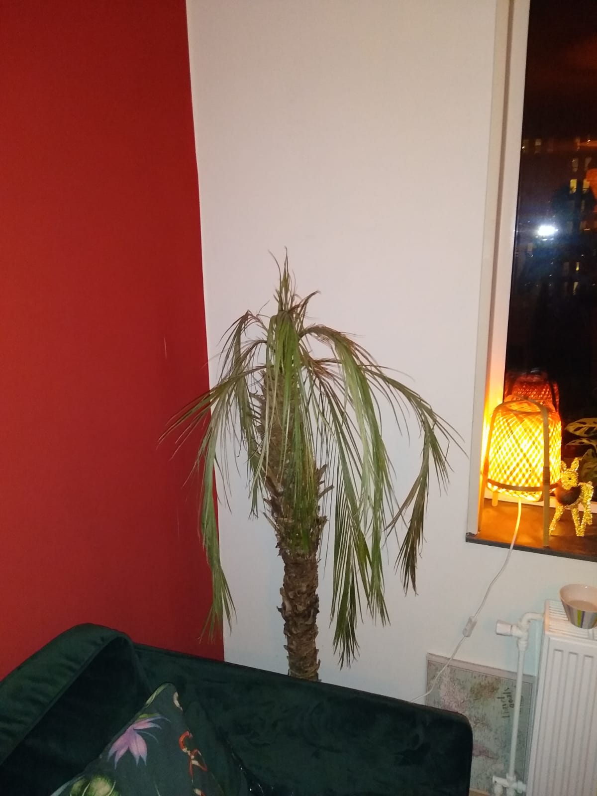 De palm staat naast de verwarming bij het raam. Wie weet te warm/droog in de winter, maar hij is de hele winter stabiel gebleven en alleen in de laatste 2 weken achteruit gegeaan.