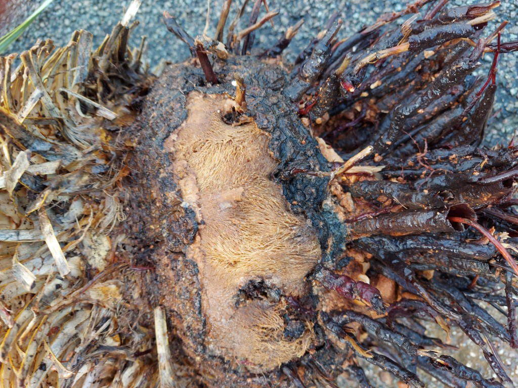 Misschien is te proberen om het onderste deel van de stam met de dode wortels af te zagen, de stomp een week laten opdrogen en vervolgens in een luchtig grondmengsel op te potten. Zie