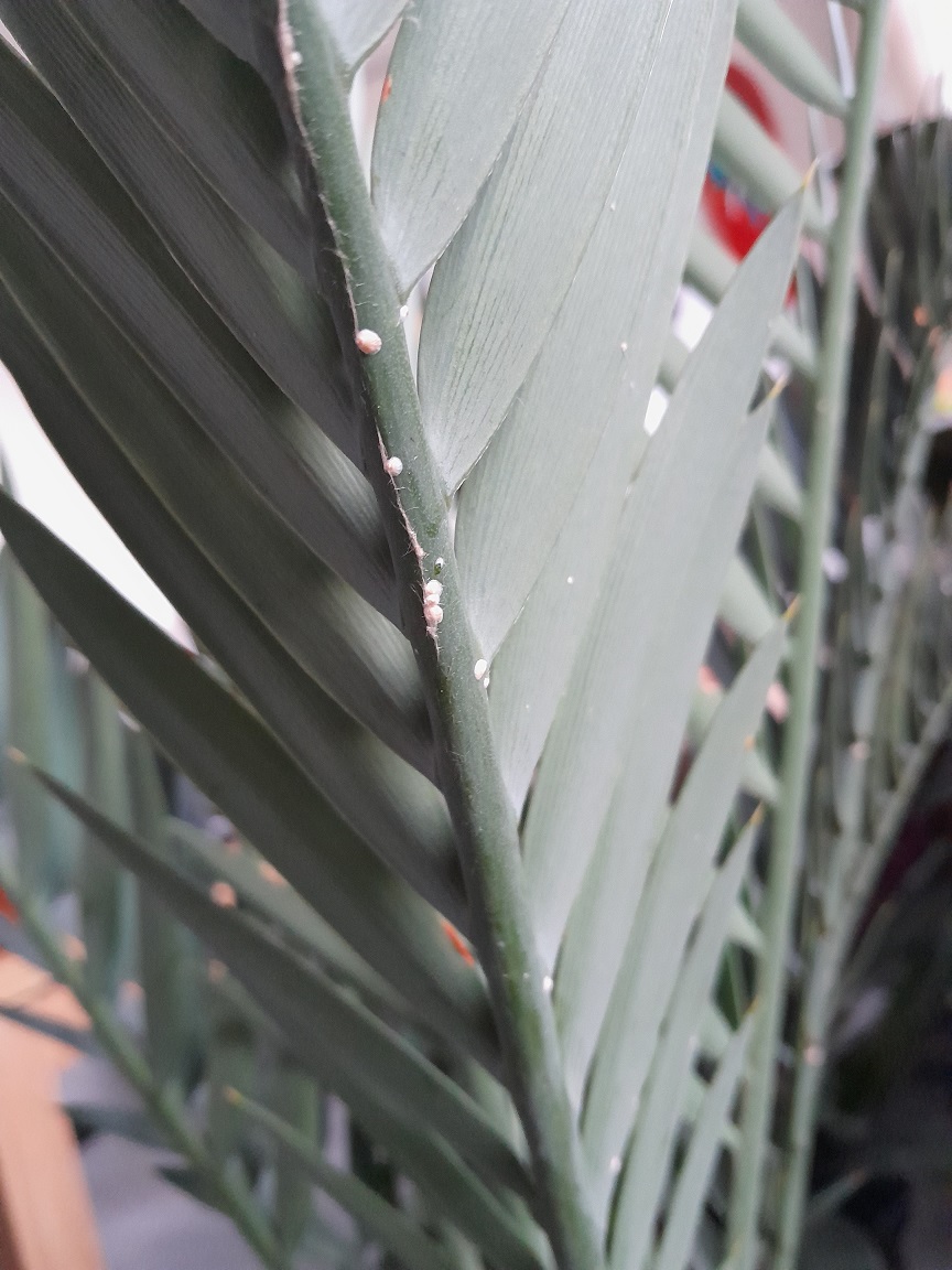 Ik vroeg mij af welke soort onverlaten mijn Encephalartos princeps belagen. Weet iemand dit? En wat kan ik er het best aan doen? Het lijkt me een soort dopluis maar ben er niet zeker van.