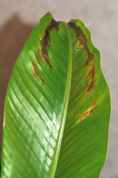 Opvallend is wel dat de dwarf cavendish die er tussen staat hier geen enkele last van heeft.
