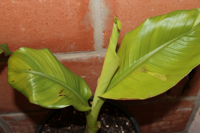 hoi, mijn banaan zaailingen krijgen nadat ik ze binnen heb gezet bruine vlekken op de bladrand.