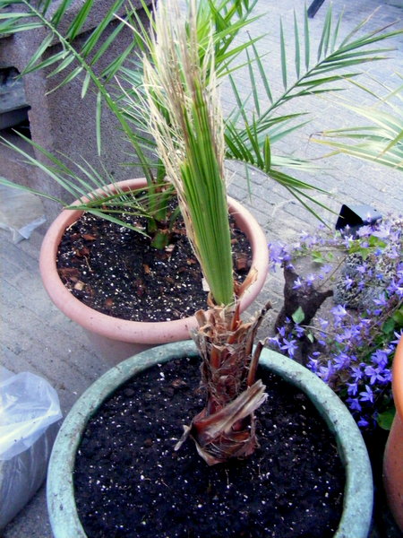 Helaas bekende ze zelf dat ze niet echt met palmen overweg kon en mocht ik hem overnemen in ruil voor wat agaves. Deze doen het opvallend toch wat beter dan een palm ! :)