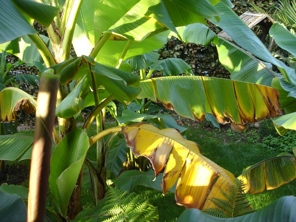 ondertussen zijn al mijn Basjoo's binnen gezet en ontdaan van de bladeren,een 10 tal met stam van 1 m 30 liggen gewoon neer in de kelder,gewoon een plastiek zak over de wortelkluit,geen enkel probleem daarmee,vorige winter ook zo gedaan en geen enkele verloren.
