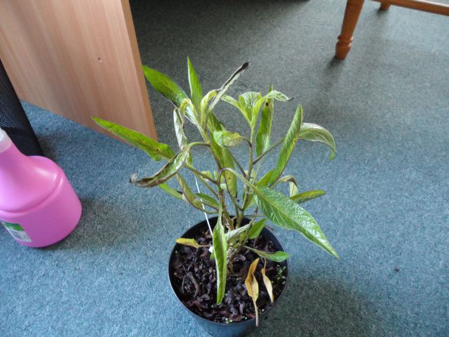 Ook heb ik al een 5 tal bladeren die geel werden en eraf gevallen waren.