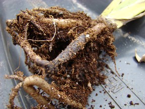 Hierbij een foto van de grote wortel die is aangetast