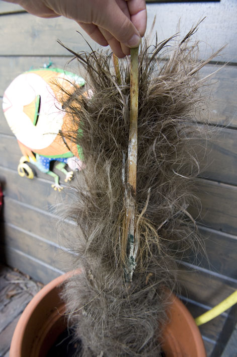 als laatste een soort van wondertje, dit kleine speertje heeft een grote trachy van een meter of 6 zelf uit zijn kern geduwd, hij is al een tijdje aan de groei, het speertje was helemaal verdroogt