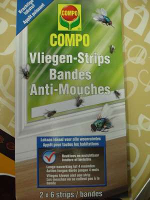 Ook heb ik de kleinere strips in enkele potten staan. Vooral de potten die wat apart staan. Hier zitten bijna geen vliegjes op.