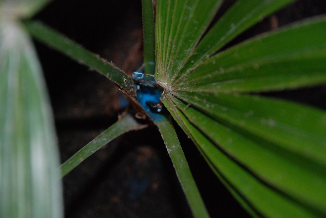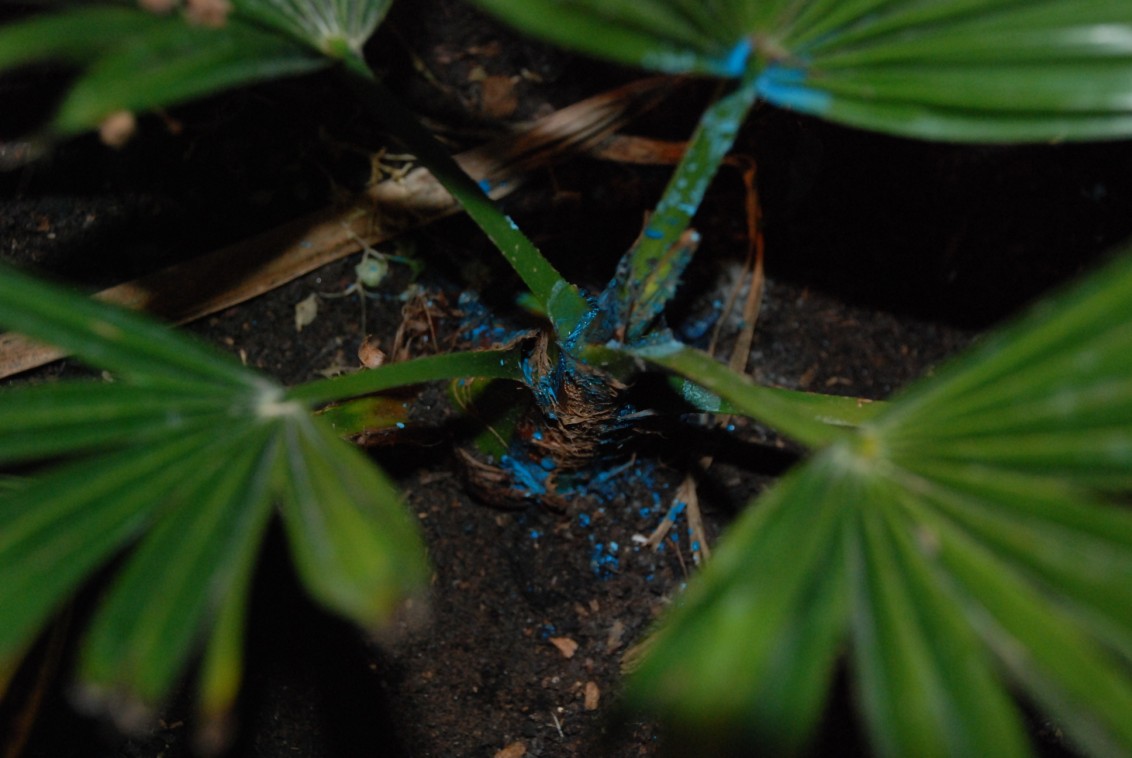 Zojuist eens inspectie ronde gaan houden van de 2 Trachycarpussen Fortunei die deze winter ook al hadden ze binnen overwinterd speerrot hadden,had deze alle 2 behandeld met bordolaise pap en wat blijkt,ze zijn er door aan het komen,hoeraa :)