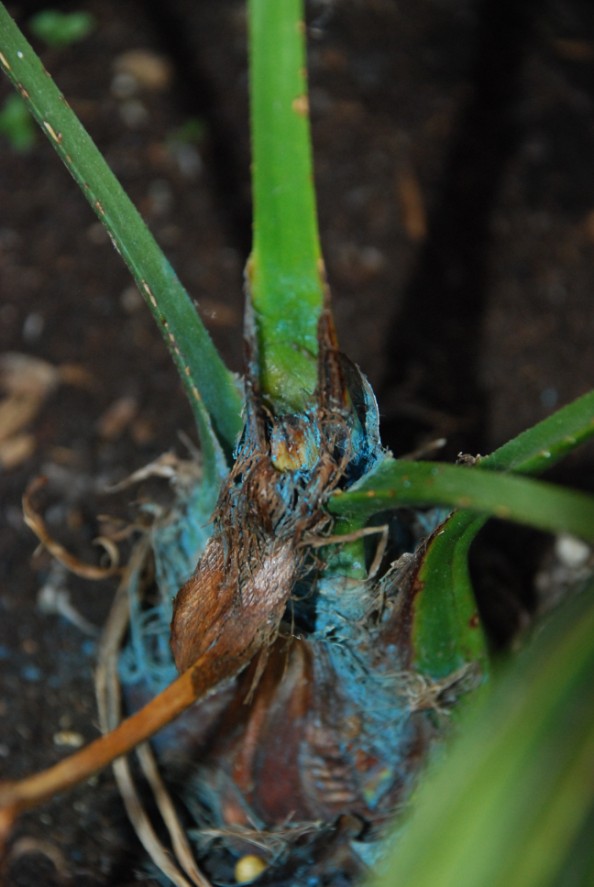 Over 2 jaar had ik een zaailing die ik als test buiten geplant had en niets van bescherming had gegeven,ook speerrot,dacht die zal ik wel mogen weggooien,had er dan ook bordolaise pap in het gat gedaan en deze heeft zich heel goed hersteld.