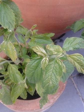 Sinds vorige weeg verkleuren er enkele bladen op mijn Lantana trifolia. Iemand een idee wat dat kan zijn?