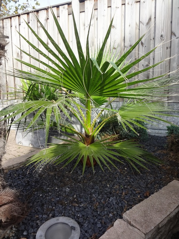 Omdat mijn vorige Trachycarpus Futunei is overleden ben ik toch maar naar de kweker terug gegaan en verteld dat de palm die ik 1 jaar geleden gekocht heb en in de volle grond heb geplaatst het niet gered heeft ook is hier vorige winter geen vorst geweest hij zei gewoon dan neem je toch een nieuwe mee en dat zonder een foto of wat dan ook te laten zien veel lof voor deze verkoper (olijfbomen.nl)