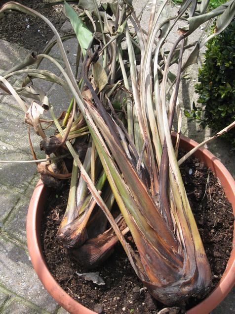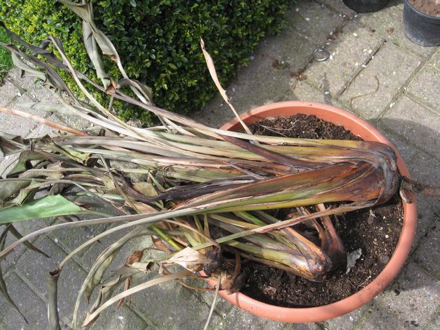 Heb deze zoals nog een paar andere planten waarschijnlijk teveel water gegeven in de winter, heeft ook in het tuinhuis gestaan en dus zo'n -3° gekregen .