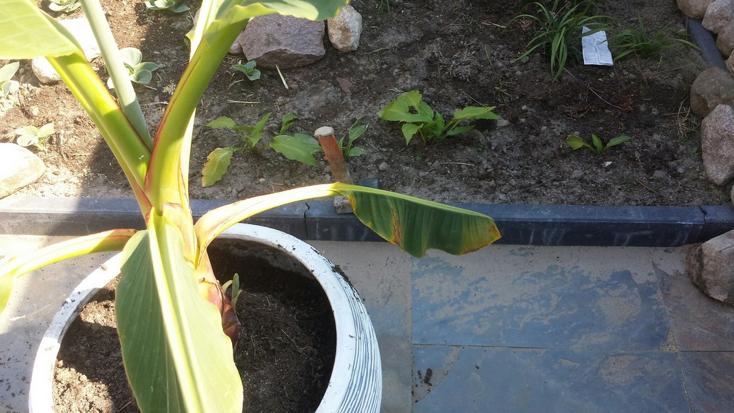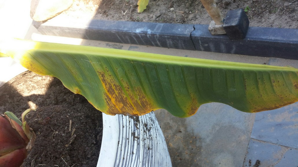 me Musella lasiocarpa daar gaan de onderste bladeren van hangen