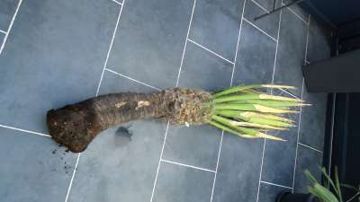 Is de eerste keer dat ik een bare rooted Yucca in het najaar toekrijg. Normaal doe ik dit steeds in het voorjaar waarbij ik de Yucca dan gewoon in de serre laat "bakken" de rest van dat jaar. Dan steekt het ook zo nauw niet wat watergift betrefd aangezien die grond op een wip en een snik terug gortdroog is.