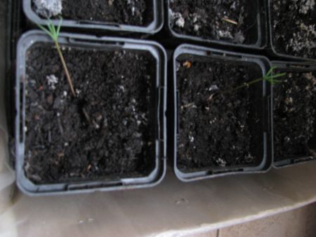 Om een of andere reden valt m'n Sequoia zaailing gewoon omver. Ik weet echter niet hoe dit komt ... Zou het kunnen zijn omdat de zaailing nog in zaaigrond zit, en de nodige meststoffen mist om verder op te groeien? De andere zaailing (ook op de foto zichtbaar) die later is gekiemd, doet het echter nog goed.
