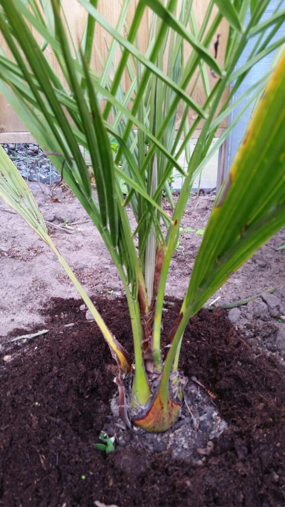 Ik heb deze Jubaea ongeveer half maart in de volle grond gezet.