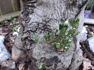 De nieuwe takjes heb ik verwijderd. Er komen er steeds nieuwe bij dus dood is hij niet. Ik heb hem trouwens meststof gegeven. Van die korrels voor palmen en olijven. Ook heb ik hem al iets terug gesnoeid.