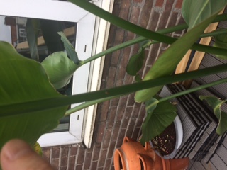 Ruim anderhalf jaar geleden een Strelitzia Nicolai gekocht. Deze heeft in ons vorige huis goed geboerd, mooie groene, gave en stevige bladeren. Daar destijds in de zomer op het balkon gestaan, in de winter binnen. Nu sinds twee maanden verhuisd, de plant ging mee. De eerste drie weken binnen gestaan i.v.m. het weer en sindsdien eerst buiten op het balkon en nu sinds een week of drie op het dakterras. Echter worden de bladeren gelig en bruin, met uitgedroogde en omkrullende bladeren. Ik geef niet teveel water, niet teveel voeding, hij staat tot een uurtje of 1 in de zon. Wel heeft hij last van schildluis, deze heb ik laatst weggeveegd maar ze komen terug dus daar is bestrijding voor nodig. Maar is dit de hele reden voor verkleuring en omkrullende bladeren? Nee toch? Zie foto's. Hoop dat iemand kan helpen.