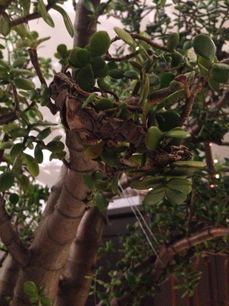 De takken van onze Crassula Ovata verschrompelen van boven naar onderen toe!