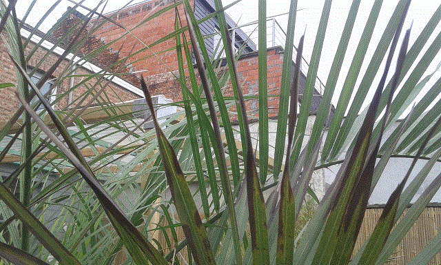 Re: Butia Capitata krijgt bruine punten en verdorren.