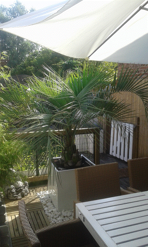 Ik heb een Butia capitata en had deze heel de winter ingepakt met vliesdoek en warmte kabel.