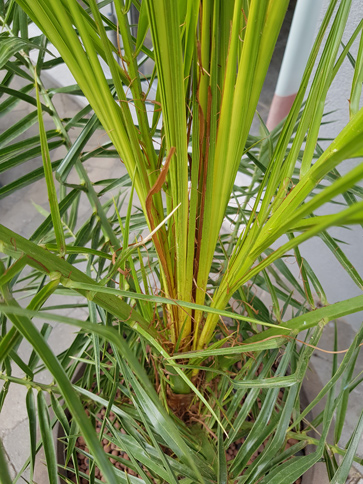 Verder kochten we ook een Phoenix Canariensis. Deze heeft wat kleurstoffen op de blaadjes, misschien van producten over te sproeien? Maar er zitten ook bruine stippen op verschillende blaadjes.