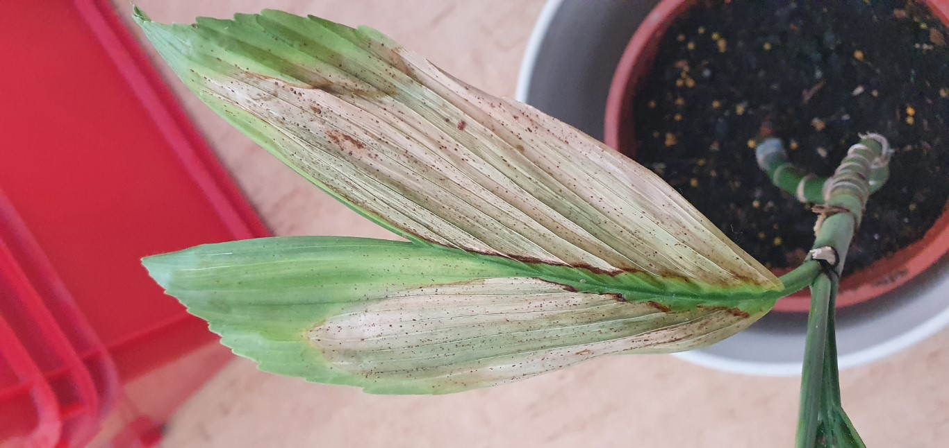 Re: Chamaedorea Metallica, bruine stervende bladeren,