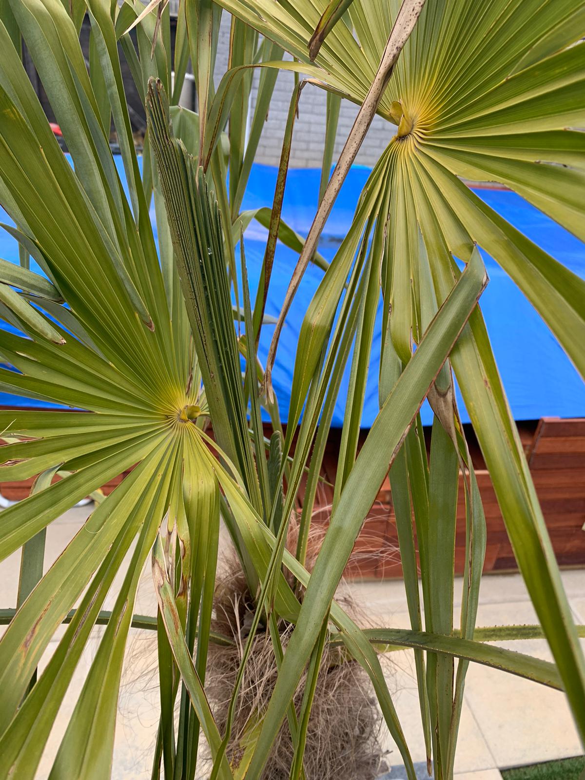 Die bruine vlekken is absoluut vorstschade, maar dat is op zich niet bijzonder, zelfs mijn reeds gezetten Trachies hebben er wel eens last van.