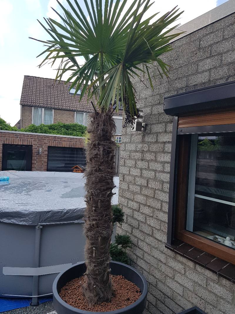 Sinds vorig jaar heb ik 4 grote palm bomen in de tuin van ongeveer 2,50 meter die ik heb kunnen overnemen van een goede kameraad van me omdat die ging verhuizen.
