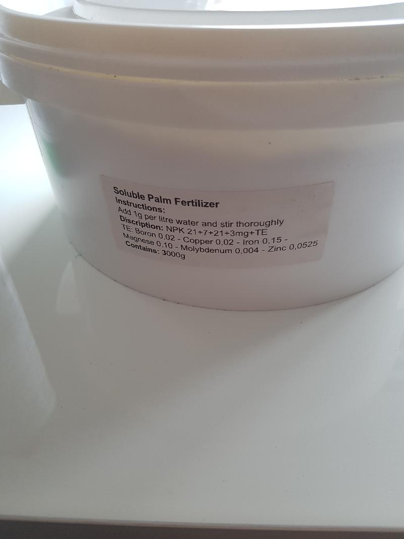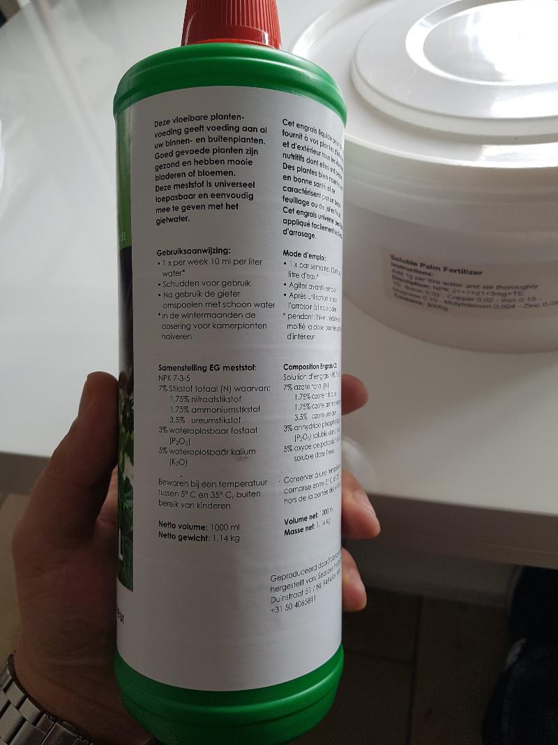 Dit is de palm voeding die ik om de 2 a 3 dagen toevoeg bij het water (op advies van aveve winkel)