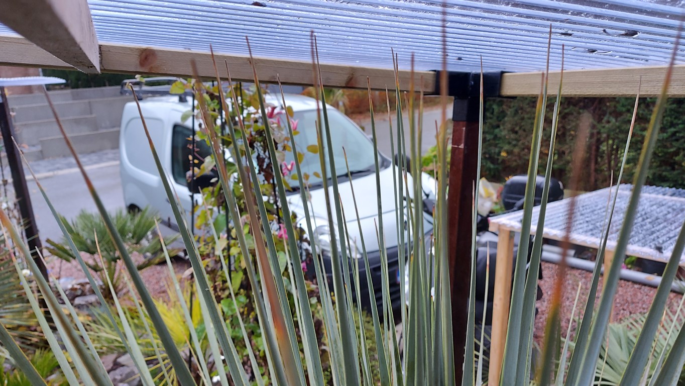 Staat onder een afdak sinds maand geleden , ander gelijksoortig hebben dit ook vb Nolina.
